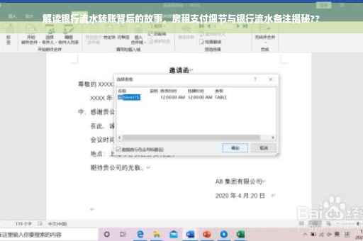 在现代社会,随着生活节奏的加快,越来越多的人选择通过银行转账的方式来支付房租,银行流水转账备注房租已经成为一种普遍现象,在这一现象背后,隐藏着许多故事和细节,本文将围绕这一主题展开探讨,带您了解背后的真实情况。