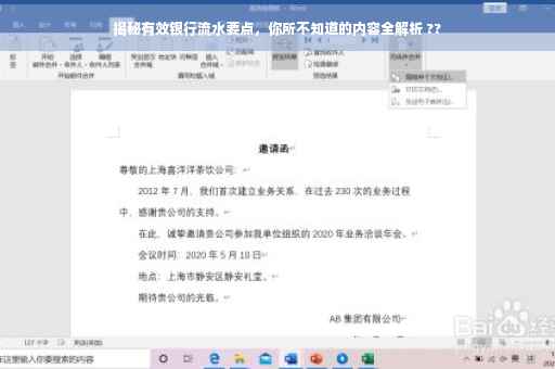 在当今社会,随着金融行业的快速发展,越来越多的人开始关注个人财务管理的重要性,有效银行流水作为个人财务管理的重要组成部分,对于个人理财、企业运营等方面都具有重要意义,本文将详细介绍有效银行流水的概念、作用,以及如何通过合理的银行流水管理实现个人或企业的财务目标。