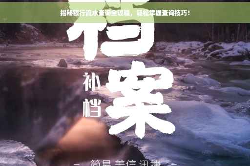 在现代社会,随着金融业务的日益普及,越来越多的人开始关注自己的银行流水情况,银行流水作为个人或企业资金往来的重要记录,对于贷款申请、信用卡办理、财务审计等场景具有关键作用,本文将详细介绍如何查询银行流水,帮助大家轻松掌握查询方法。