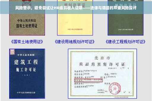 摘要:,,警惕风险,切勿尝试让HR虚开收入证明。这不仅违反法律,也违背道德。虚开收入证明可能导致个人信用受损、公司声誉受影响,并涉及法律责任。应遵守法律和道德规范,通过正当途径获得收入证明。切勿因短期利益而冒险,维护个人和企业的长远利益。