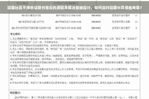 近年来,随着国际交流的加深,越来越多的人选择出国留学、工作或旅游,在回国过程中,部分归国人员遇到了社区不接收证明书的问题,这一问题不仅给他们的生活带来了不便,也引发了人们对相关政策和社区管理机制的高度关注,本文将围绕这一问题进行深入分析,探讨其背后的原因,并提出切实可行的解决方案。