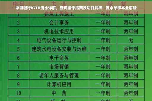 摘要:本文将详细介绍中国银行IGTB流水查询、操作及功能解析,包括流水单样本展示。通过本文,读者可以了解如何查询中国银行流水,掌握操作技巧,并了解流水的各项功能及其在实际应用中的作用。文章旨在帮助读者更好地管理个人财务,了解银行流水的重要性。