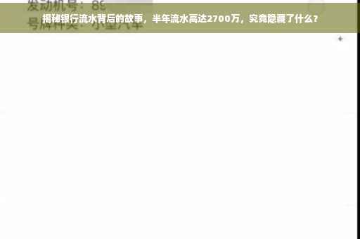 通过以上的分析,我们可以看出,半年银行流水2700万的背后隐藏着一个个令人钦佩的创业故事、一个个成功的企业和个人,他们在实现巨大资金流动的同时,也面临着巨大的挑战和风险,我们应该从他们身上学习成功经验,关注金融市场的动态,为自己的发展寻找机会,我们也要提醒广大读者,在追求财富的过程中,要遵守法律法规,注重风险管理,确保自己的资金安全。