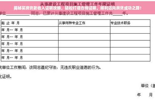 在申请房贷时,银行和其他金融机构需要确认贷款申请人的还款能力,其中最直接的依据便是申请人的收入状况,收入证明是贷款审批过程中的重要环节,一份真实、完整的收入证明能够大大提高贷款申请的成功率。