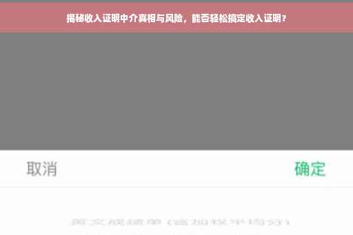 摘要:关于收入证明中介能否搞定这一问题,存在真相与风险需揭示。使用收入证明中介需谨慎,因为虽然他们可能提供便捷的服务,但同时也可能涉及虚假证明等违法行为。本文将探讨收入证明中介的运作方式及潜在风险,提醒公众在寻求此类服务时务必审慎,避免陷入法律风险。