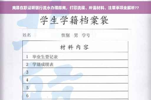 在南昌,办理各类业务时,有时需要提供在职证明和银行流水作为证明材料,这两份材料能够证明您的就业状况及收入情况,对于办理贷款、信用卡、签证等业务至关重要,本文将详细介绍南昌在职证明银行流水的办理流程、所需材料以及注意事项,以便您能够顺利办理相关业务。