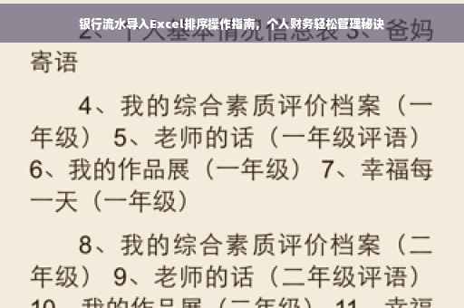 在现代社会,随着个人财务的日益复杂化,如何有效管理银行流水成为了许多人关注的焦点,将银行流水导入Excel进行排序,不仅能帮助我们清晰掌握资金流向,还能更好地规划个人财务,本文将详细介绍如何将银行流水导入Excel,并进行高效的排序操作。
