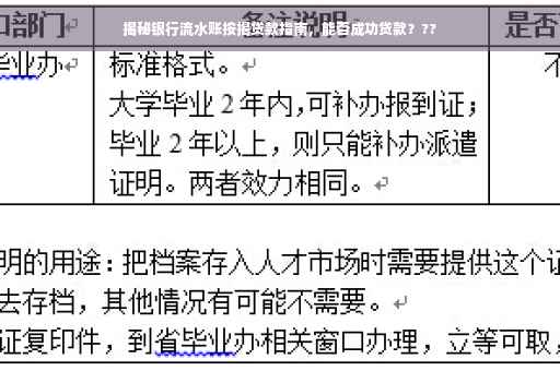 1、提前了解银行政策:不同银行对于流水账的要求和审批标准可能有所不同,申请人需提前了解并选择合适的银行。