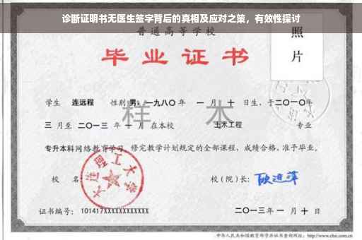 摘要:诊断证明书缺乏医生签字引发关注,其背后涉及真相及应对之策。缺乏医生签字的诊断证明书在法律和医疗规定上可能不具备效力,可能导致患者权益受损。为解决此问题,应加强医疗管理,提高医生法律意识,确保诊断证明书的合法性和有效性。患者也应了解自身权益,对诊断证明书进行核实。