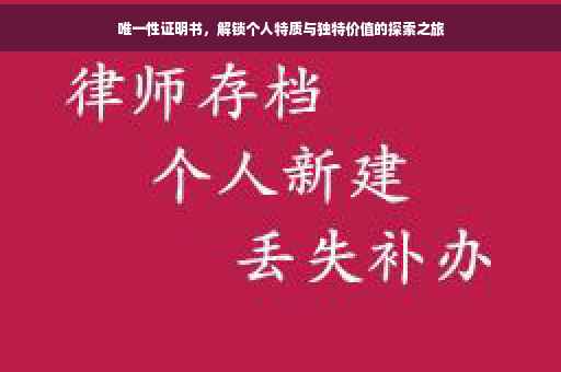 唯一性证明书是一份记录我们个人特质与价值的文档,它见证了我们成长的过程、取得的成就和拥有的价值,这份证明书不仅是对我们过去努力的肯定,也是对未来潜力的期许,持有唯一性证明书,我们可以更加自信地面对人生的挑战,追求自己的梦想,我们也可以借助这份证明书,与他人分享自己的故事,传递正能量,激励更多的人走上探索个人特质与价值的旅程。