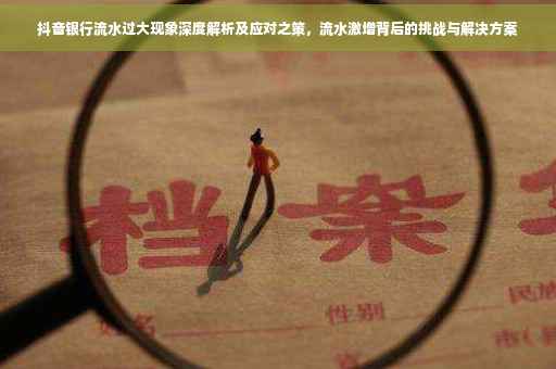 摘要:抖音银行流水过大的现象引起了广泛关注。本文深度解析了这一现象,探讨了其背后的原因和影响。针对这一问题,文章提供了解决方案和建议,帮助应对银行流水过大的情况。通过优化账户管理、合理规划和监控资金流动,可以有效解决抖音银行流水过大的问题。