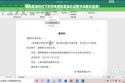 摘要:随着绿色能源时代的到来,充电桩经营单位证明书成为行业新宠。该证明书主要用于证明某一单位或企业具备从事充电桩经营业务的资质和能力。内容通常包括单位名称、经营范围、法定代表人等信息,并加盖公章,以证明其合法性和真实性。撰写充电桩经营单位证明书时,需遵循相关格式要求,确保信息的准确性和完整性。这一证明书的出现,为充电桩行业的发展提供了便利,促进了绿色能源的应用和推广。