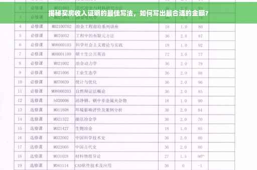 摘要:本文旨在全面解析买房收入证明应写多少才合适。文章将围绕收入证明的重要性、如何合理填写收入证明、注意事项以及常见误区等方面展开阐述,帮助购房者正确把握收入证明的撰写,确保顺利购房。文章内容丰富,实用性强,为购房者提供了有益的参考。