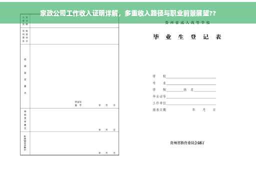 摘要:本文将详细介绍家政公司工作的收入证明,阐述这是一份职业可以带来多重收入的特点。文章指出,家政公司工作收入证明包括基本工资、福利待遇、绩效奖金等多个方面,对于从事家政服务的人员来说,通过多种渠道可以获得不错的收入。文章将指导读者如何撰写家政公司工作收入证明,以便更好地展示个人职业成就和经济实力。