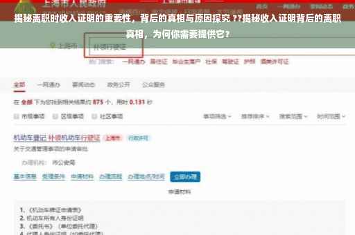 摘要:本文将揭示辞职时为何需要提供收入证明的背后真相。在离职过程中,收入证明成为必要环节,因为它涉及到个人信用、新工作薪资谈判、社保缴纳等多方面问题。提供收入证明能够确保个人信用记录的良好,为未来的职业发展铺平道路。本文将详细解读收入证明的重要性,并解答为何辞职时需要写收入证明。