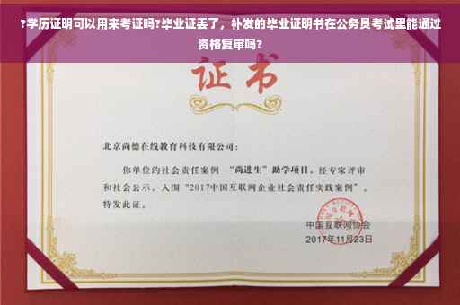在公务员考试的资格复审环节,需要考生出具毕业证和学位证及相关证件的原件。 如果原件遗失,必须到原毕业学校补办,毕业证明书是在宣布毕业证原件丢失作废后补办的毕业证书,两者效力一样,法律上没有差别。 建议提前和审核的用人单位或者人事部门好好沟通说明情况。