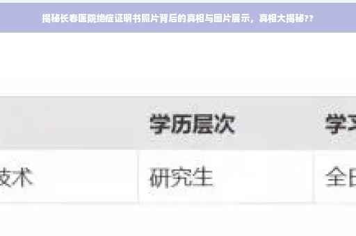摘要:有关长春医院绝症证明书照片的话题引起广泛关注。据调查,这些照片背后隐藏着真相,引发人们对医疗证明真实性的质疑。本文将揭示这些照片背后的故事,探讨医疗证明的真实性以及所涉及的问题。