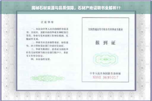 摘要:本篇内容主要介绍了石材产地证明书的重要性及其作用。通过详细阐述优质石材的来源和品质保障,让读者了解石材产地证明书的意义和如何撰写。本文还提供了关于如何识别和选择优质石材的建议,帮助消费者做出明智的购买决策。