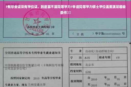 有本科大学毕业证没有学位证不算同等学历,同等学力一般指大专文凭+两年的工作经验。这种情况被看做与“本科”具有“同等的学力”你的情况就是本科学力。但是是可以直接考研的。只是有些大学的硕士点是要求有本科学位的,没有的不能报考或不予录取。择校时一定要问清楚。大部分学校是不需要学位证的,拿着毕业证就行,和普通本科毕业生没有区别!