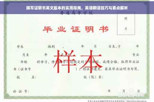 撰写证明书是一项重要的技能,掌握其英文表达方式对于国际交流和个人发展具有重要意义,通过本文的介绍,希望能够帮助你了解如何撰写证明书英文版本,提高你的英语写作能力,在实际应用中,不断积累经验和技巧,你将能够更熟练地撰写各种证明书。