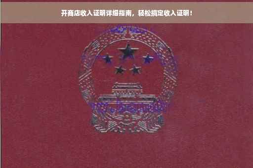 摘要:本指南将教你如何为开商店开具收入证明。准备好必要文件如营业执照和财务报表。根据商店的实际情况填写收入证明表格,包括商店名称、经营时间、收入项目和金额等。确保所有信息真实准确,并由商店负责人签字盖章。如有需要,可以咨询银行或相关部门了解更多开具收入证明的详细要求和流程。本指南助你轻松搞定收入证明,助力商店经营。