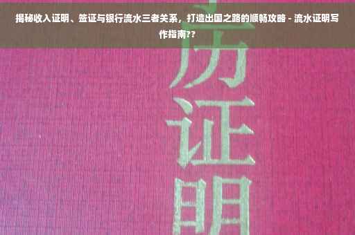 随着全球化的步伐加快,越来越多的人选择走出国门,探索不同的文化和生活方式,在办理签证的过程中,提交的资料繁琐且需要严谨对待,收入证明和银行流水作为重要证明材料,与签证申请息息相关,本文将为您详细解读收入证明、签证及对应银行流水的关联,助您打造顺畅的出国之路。