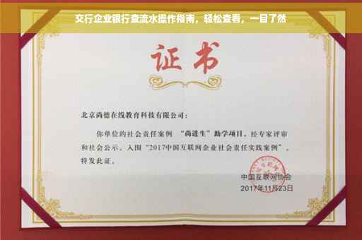 交通银行企业银行查流水是一项便捷、高效的服务,帮助企业财务人员轻松完成日常工作,在使用过程中,请注意保护好个人信息和账户安全,确保资金安全,希望通过本文的介绍,您能更好地使用交通银行企业银行查流水功能,为您的企业带来更大的价值。