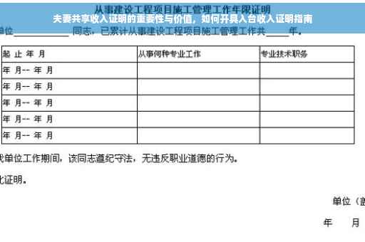 随着两岸交流的日益频繁,越来越多的夫妻选择共同前往台湾发展事业或旅游观光,在这个过程中,夫妻共享入台收入证明成为了重要的证明材料之一,本文将详细介绍夫妻共享入台收入证明的相关内容,帮助大家了解其作用、办理流程以及注意事项。