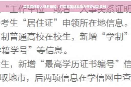 摘要:本文将详细介绍美国面签收入证明的重要性以及如何打造完美的收入证明材料以助力签证成功。本文将指导读者了解如何正确开具美国面签收入证明,包括必要的格式、内容和注意事项。通过阅读本文,读者可以了解如何准备充分的材料,以增加签证成功的几率。