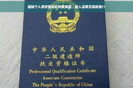 摘要:本文将介绍如何开具用于个人房贷的收入证明,同时揭示贷款背后的财务真相。通过本文,您将了解收入证明的重要性以及其在申请房贷过程中的关键作用。本文还将提供一些有用的建议,帮助您了解如何合理规划个人财务,以便更好地申请房贷。