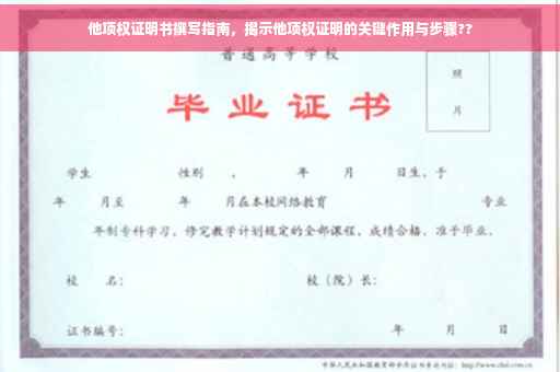 摘要:本指南旨在帮助撰写他项权证明书,详细介绍他项权证明的作用和重要性。通过本指南,您将了解他项权证明在证明特定权利或权益方面的关键作用,包括如何准确、清晰地阐述证明内容,以确保其有效性和可靠性。他项权证明书对于维护个人和组织的合法权益具有重要意义。