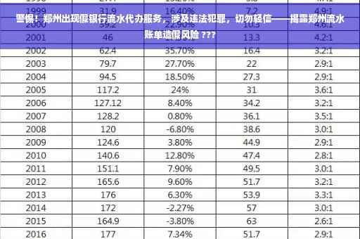 郑州出现代办假银行流水服务,涉及违法犯罪行为。提醒广大市民切勿触碰法律红线,不要因贪图便利而陷入非法交易的陷阱。银行流水账单是真实记录个人经济交易的重要文件,伪造流水账单不仅违法,还可能给自己带来严重的经济损失和信用危机。请广大市民提高警惕,遵守法律法规,保护自己的合法权益。