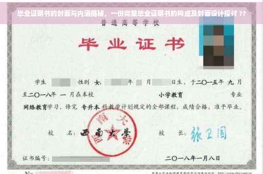 摘要:毕业证明书是一份重要的证明文件,其封面和内涵都至关重要。封面应包含学校名称、证书类型等基本信息,而内涵则包括毕业生个人信息、学习经历、毕业时间、专业、授予学位等内容。一份完整的毕业证明书必须有封面,以确保其正式性和权威性。毕业证明书的构成体现了学生的学业成就和学校的教育质量。