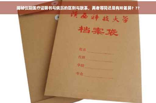 在医疗领域,住院医疗证明书和病历对于患者就医过程具有极其重要的意义,它们详细记录了患者的病情、治疗过程及效果,为患者的后续治疗和管理提供重要依据,很多人对这两者存在混淆,本文将为您深入解析住院医疗证明书与病历的不同之处,以及它们在医疗过程中的作用。