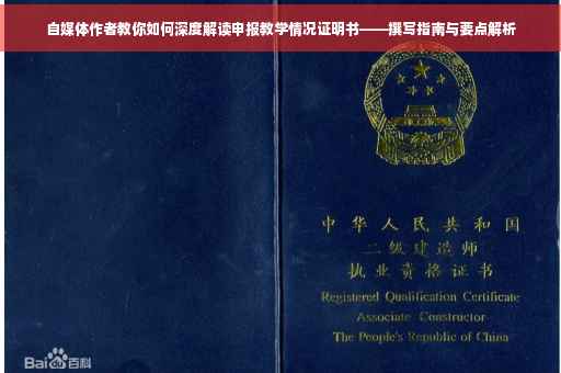摘要:本文将从自媒体作者的角度出发,深度解读如何撰写申报教学情况证明书。文章将介绍申报教学情况证明书的撰写要点,包括自媒体作者在教学过程中的角色、教学内容、教学方法、教学效果等方面的描述。本文还将提供具体的写作建议和注意事项,帮助自媒体作者准确、全面地展示其教学情况,为相关机构或企业提供有力的证明。
