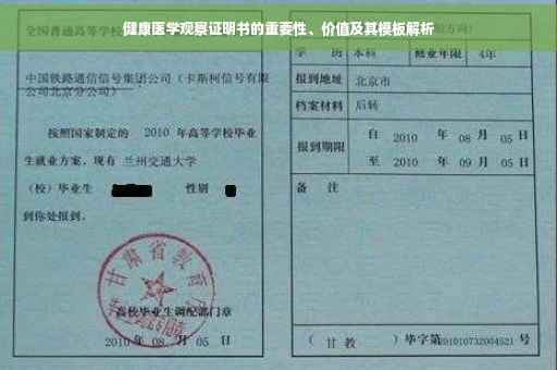 随着现代社会生活节奏的加快,健康问题日益受到人们的关注,在此背景下,健康医学观察证明书作为健康管理中不可或缺的一环,对于保障公众健康、维护社会秩序具有重要意义,本文将详细解读健康医学观察证明书的作用、内容及其重要性,并通过案例分析,以期帮助大家更深入地理解和认识它。
