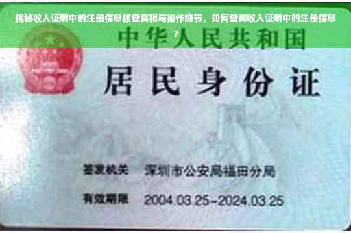 摘要:关于收入证明是否查注册信息,真相与操作细节揭晓。收入证明是验证个人经济能力的重要依据,注册信息则是核实个人身份的关键。实际操作中,部分机构会查询注册信息来验证收入证明的真实性。若需查证,可通过联系相关机构或平台,提供必要身份信息,并遵循其查询流程。了解这些有助于确保个人权益,避免信息误导。