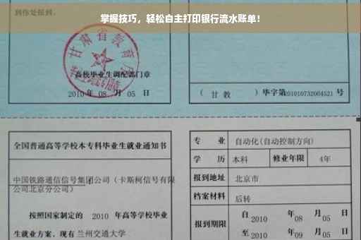 掌握技巧,轻松自主打印银行流水账单。只需简单几步,即可轻松获取银行流水账单。首先登录个人网上银行或手机银行,进入账户查询页面,选择打印流水账单选项,设置打印时间和打印内容,最后确认打印即可。无需繁琐手续,省时省力,轻松掌握自主打印银行流水账单的技巧。