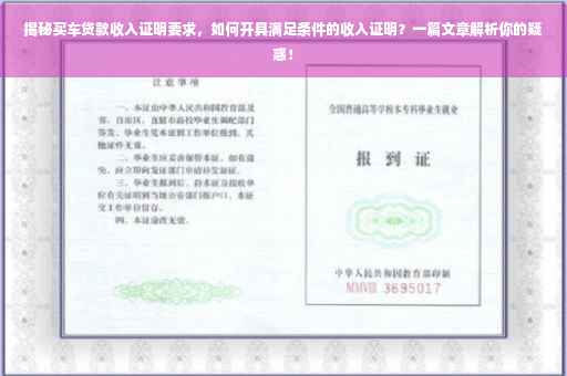 摘要:本文旨在解析买车贷款所需的收入证明问题。文章首先介绍了收入证明在申请车贷中的重要性,接着详细阐述了收入证明的金额要求,以及不同银行或金融机构的具体标准。文章还指导读者如何正确开具收入证明,包括证明格式、所需内容等细节。本文帮助读者了解买车贷款收入证明的相关要求,以便顺利申请车贷。