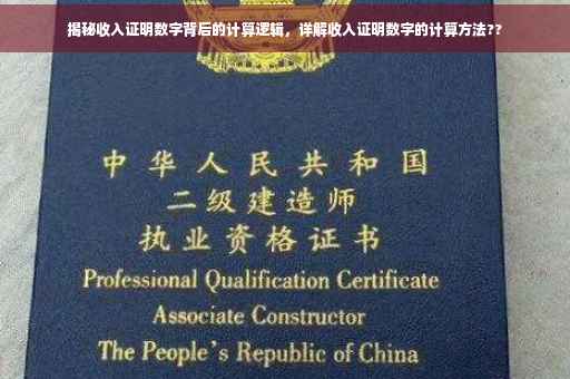 摘要:本文将为你揭示收入证明数字背后的计算逻辑。了解收入证明的概念及其重要性。深入探讨收入证明数字的计算方法,包括各种收入来源的核算方式。强调合理计算收入证明数字的重要性,并提醒读者在提供收入证明时需谨慎核实数字的准确性。