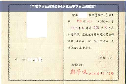 职业高中和职业中学毕业颁发地方教育部门印制的带“职业”字样毕业证书。