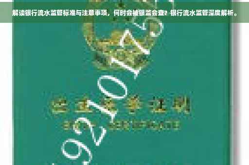 随着金融行业的快速发展,越来越多的人开始关注个人银行账户的流水情况,银行流水作为个人经济活动的记录,在某些情况下可能会引起监管机构的关注,银行流水多大银监会会查呢?本文将围绕这一问题展开讨论,并带领大家了解银行流水监管的相关内容。