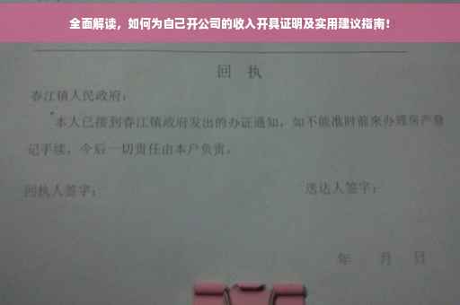 在创业浪潮汹涌的今天,越来越多的人选择成为自由职业者、个体工商户或企业家,当涉及到贷款、购房、签证等事务时,收入证明成为一项至关重要的证明材料,自己开公司的朋友们该如何开具一份合理、规范的收入证明呢?本文将为您详细解读,并提供实用建议。
