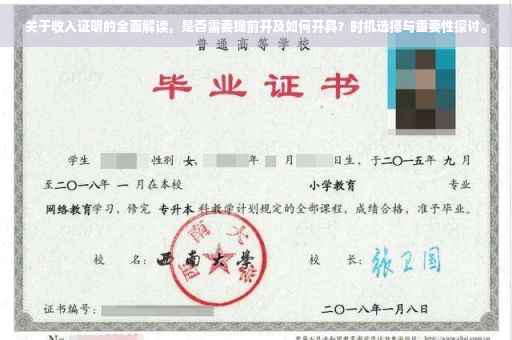 摘要:关于收入证明是否需要提前开具的问题,本文将全面解读收入证明的重要性以及时机选择。收入证明在办理贷款、信用卡、租房等场合具有关键作用,其提前开具与否需视具体情况而定。本文将指导读者如何根据实际需求妥善安排开具时间,并介绍开具收入证明的一般流程和注意事项。