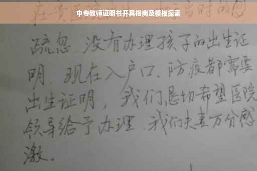 本文详细介绍了中专教师证明书的内容、格式及撰写要求,通过这份证明书,可以了解教师的教育背景、工作经历、教学成果等方面的信息,在撰写证明书时,要确保信息真实准确、逻辑清晰、简洁明了,中专教师证明书对于教师个人和教育行业都具有重要意义,有助于提升教师个人的职业发展和提高教育教学 quality,希望本文能够帮助大家了解中专教师证明书的相关知识,为大家的职业发展提供帮助。