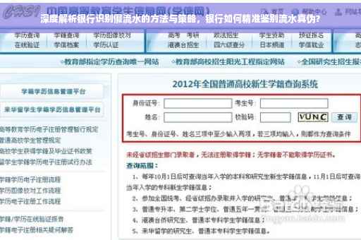 5、利用第三方数据:银行还可以利用第三方数据资源,如征信系统、支付平台等,验证客户提供的流水账单的真实性,通过比对第三方数据,银行可以更加准确地判断流水账单的真实性,通过比对征信系统中的信用记录,可以判断客户是否存在虚构交易的情况,一些专业的数据服务机构也可以提供流水账单验证服务,帮助银行识别假流水账单。