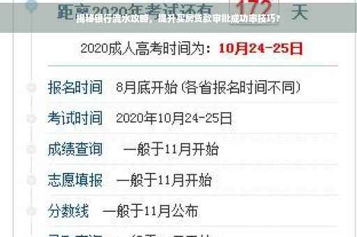 在申请购房贷款时,银行流水作为评估申请人还款能力的重要参考,其重要性不言而喻,一份良好的银行流水记录不仅可以提高贷款审批的通过率,更有可能为申请人带来更为优惠的贷款利率和额度,下面,我们将详细解读购房贷款中银行流水的相关知识,帮助申请人巧妙操作,提高贷款审批成功率。