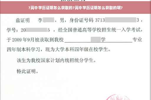 两种办法:1.本人带身份证到原就读的高中学校,通过查询本人学籍档案,开具学历证明,并加盖学校公章,如原毕业学校撤并的,由撤并后组成的学校开具。