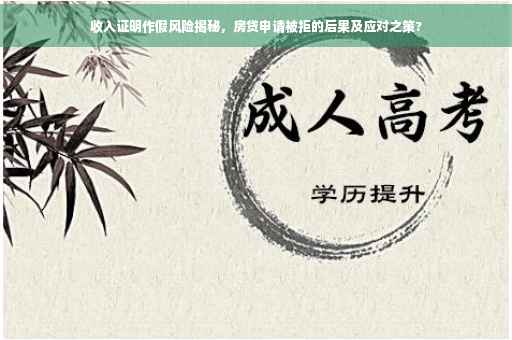 在当今社会,购房对于大多数人来说都是一项重大的经济决策,为了购买心仪的房产,许多人选择通过申请房贷来实现这一目标,在申请房贷的过程中,一些申请人可能因为种种原因选择伪造收入证明,这种做法实则隐藏着巨大的风险,本文将深入探讨收入证明作假对房贷申请的影响,以及因此导致的拒贷后果。