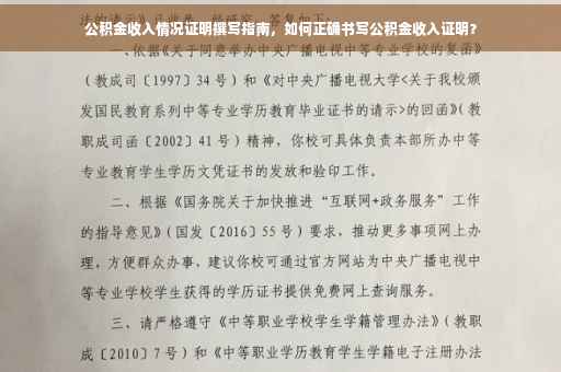 摘要:本指南旨在帮助撰写公积金收入情况证明。公积金收入证明应包含个人基本信息、收入情况、公积金缴纳情况等相关内容。撰写时需注意格式规范、内容真实准确,突出个人收入状况及公积金缴纳情况,以便证明个人经济状况和信用状况。遵循本指南,可轻松完成公积金收入情况证明的撰写。